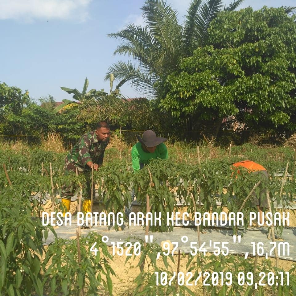 Dalam kegiatan pendampingan kali ini Sertu Herwandi mendatangi petani cabe untuk membantu pertanian perawatan Cabe Merah. dengan luas lahan 0,32 Ha kelompok Tani Jeames di desa batang Arak Kec. Bandar Pusaka “sebagai Babinsa saya selalu hadir di tengah tengah para petani untuk memberi motivasi dan semangat agar manfaatkan lahan pertanian yang ada, dengan menanam cabe merah yang memasuki usia 62 HST. dengan adanya petani cabe di wilayah Aceh Tamiang akan semakin kokoh dan meningkatnya ketahanan pangan wilayah khususnya di Aceh Tamiang,”Ungkapnya.