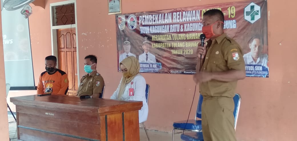 Dalam sambutan Kepala Tiyuh Kagungan Ratu Tri Haryanto menyampaikan,”kepada seluruh relawan Covid-19 harus semangat kenapa kita perlu semangat karena dengan semangat kita dapat memutuskan penyebaran pandemi virus,kita ini termasuk salah satu mata rantai pemutusan penyebaran Covid-19.”ungkapnya.
