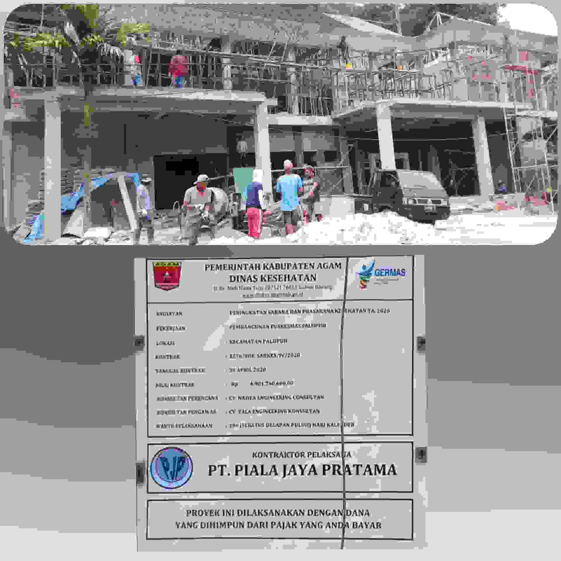 Proyek senilai 4,901,760,600 dengan kontraktor pelaksana PT Piala jaya Pratama dengan nomor kontrak 1276/SDK-Sarkes/IV/2020 tidak sesuai Permenaker no.PER.05/MEN/1996 dan PP no 50 tahun 2012 tentang K3.