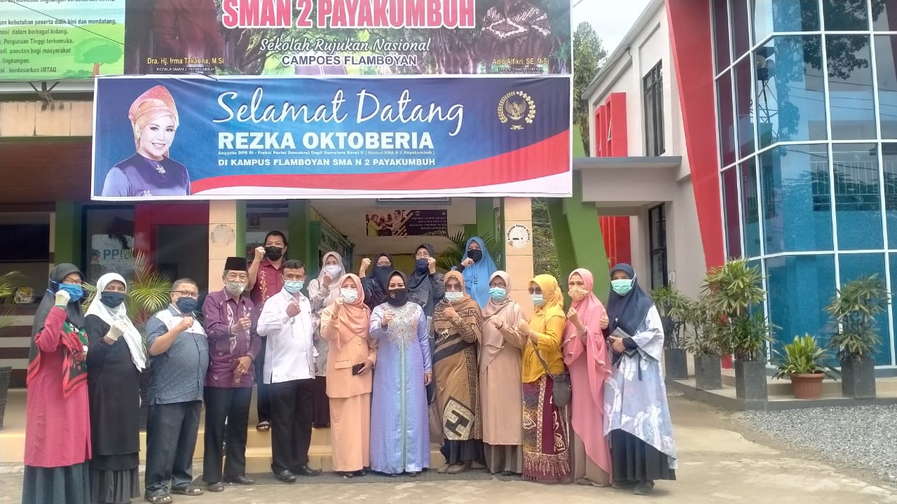 Selaku pimpinan sekolah, Irma Takarina dalam sambutannya menyampaioan ucapan selamat kepada Rezka Oktoberia atas sudah dilantiknya putri kebanggaan Luak Limopuluah itu menjadi anggota DPR-RI. Menurut Irma, hal ini adalah kebanggaan baginya, bisa menjadi motivasi bagi siswa SMAN 2 Payakumbuh kalau senior mereka mengukir sejarah.