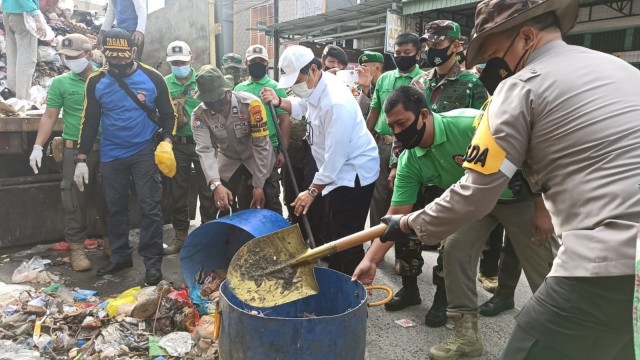 Pantauan media di lapangan, kedua jenderal ini memegang sekop dan mengambil sampah-sampah rumah tangga di Jalan Cempaka, dekat Pasar Kodim atau Pasar Senapelan.