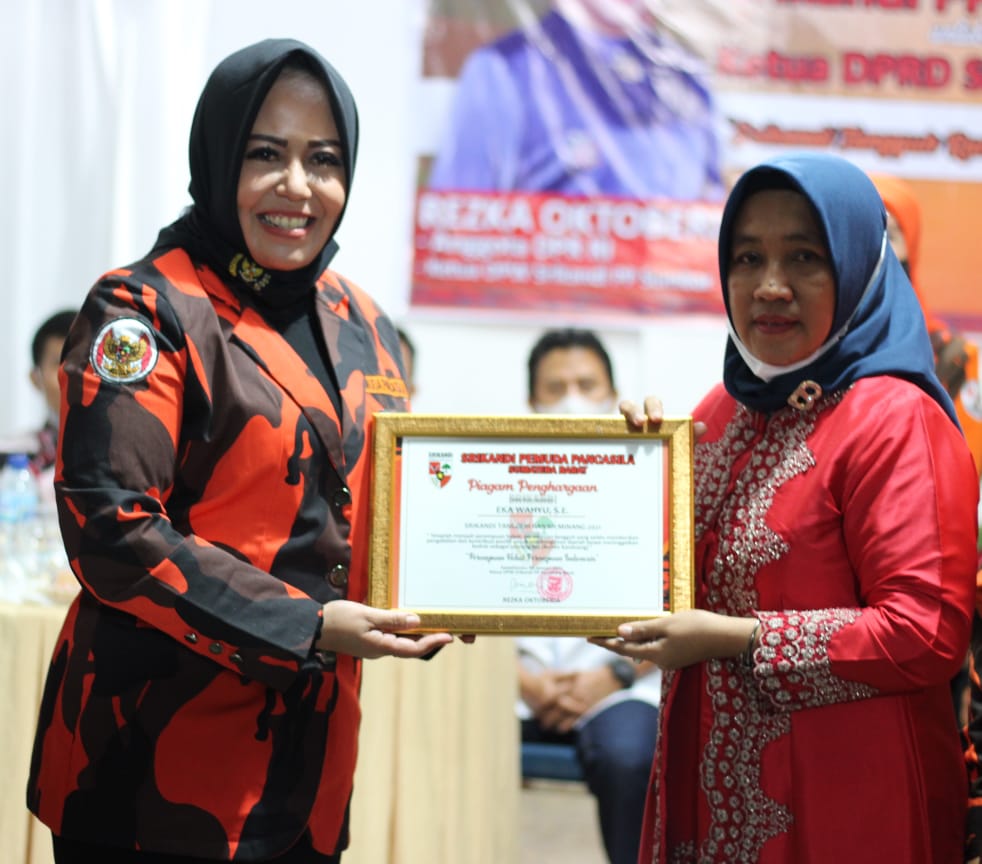 Rezka Oktoberia memberikan apresiasi kepada Ketua DPRD Sawahlunto Eka Wahyu dalam rangka Hari Ibu, sekaligus acara perkenalan Srikandi Pemuda Pancasila baik yang ada di Kota Sawahlunto maupun provinsi Sumatra Barat.