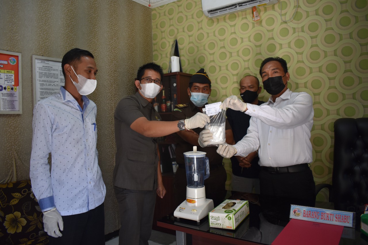 Selanjutnya dilakukan pemusnahan barang bukti narkotika berupa shabu seberat 188,56 gram, dengan cara dilarutkan dalam air lalu diblender dan kemudian dibuang ke tanah.