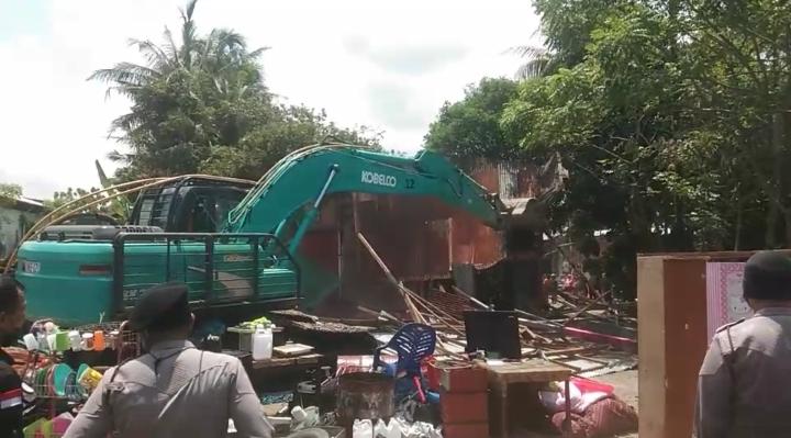 Usai melalui perundingan yang alot, akhirnya rumah permanen tersebut diratakan juga.