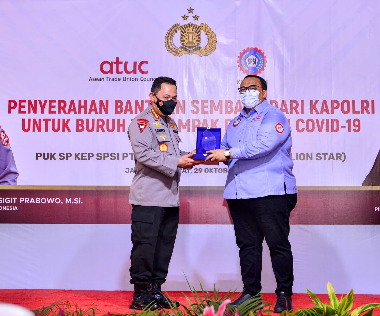 Sementara itu, Presiden KSPSI Andi Gani Nena Wea mengucapkan terima kasih atas perhatian Kapolri yang sudah memberikan bantuan terhadap buruh, baik pembagian sembako maupun vaksinasi.