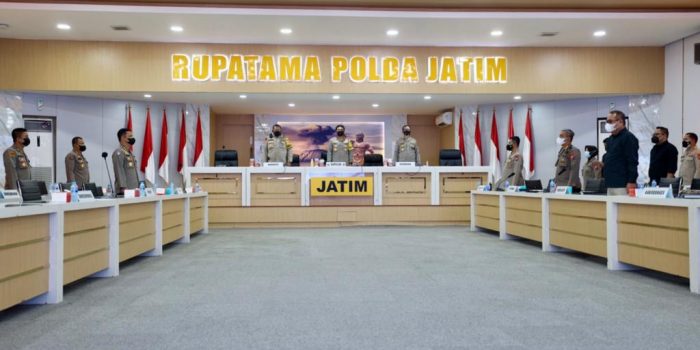 Surabaya, fokuskriminal.com – Kapolda Jawa Timur, Irjen Pol Nico Afinta, didampingi pejabat utama (PJU) Polda Jatim, Kamis (10/3/2022) mengikuti kegiatan penyampaian evaluasi dan penghargaan pelayanan publik lingkup Polri Tahun 2021 Secara Virtual Melalui Zoom Meeting di Rupatama Polda Jatim dimana kegiatan penyampaian evaluasi dan penghargaan pelayanan publik lingkup Polri Tahun 2021 dilaksanakan di aula Awaloedin Djamin lantai 9 gedung Bareskrim Polri yang dihadiri