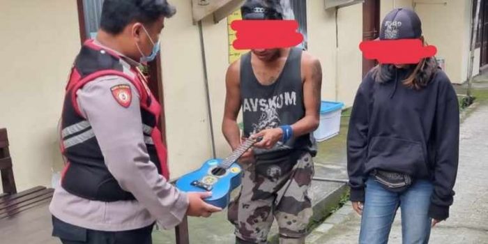 “Ketiganya yakni DS (laki-laki) asal Kecamatan Jetis, Kabupaten Mojokerto, MW (perempuan) asal Kecamatam Rejoso, Kabupaten Nganjuk dan EA (laki-laki) asal Kecamatan Banyuasin III, Kabupaten Banyuasin, Provinsi Sumatera Selatan (Sumsel). Dari ketiga pengamen tersebut diamankan sejumlah barang bukti,” katanya.