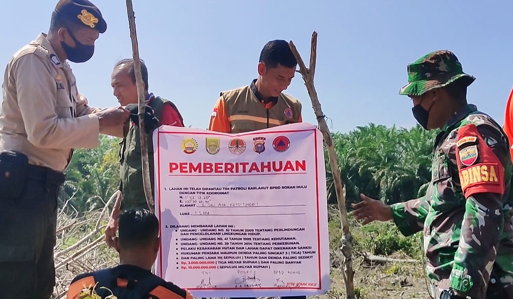 Rokan Hulu,fokuskriminal.com.- Hampir tiga bulan, tim gabungan dari TNI POLRI dan BPBD Rohul melaksanakan patroli pencegahan terjadinya kebakaran hutan dan lahan (Karhutla) secara bersama di 16 Kecamatan, 6 Kelurahan dan 139 Desa yang berada di Kabupaten Rokan Hulu, Riau.