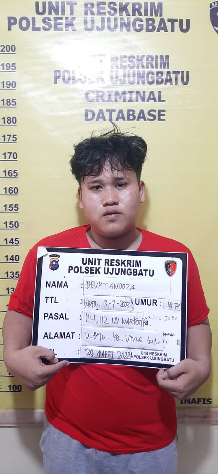 Lanjutnya, Tersangka DEV alias DEK (18), ditangkap di Jalan Kutilang Kelurahan Ujung Batu, Selasa 29 Maret 2022 sekitar pukul 13.30 Wib