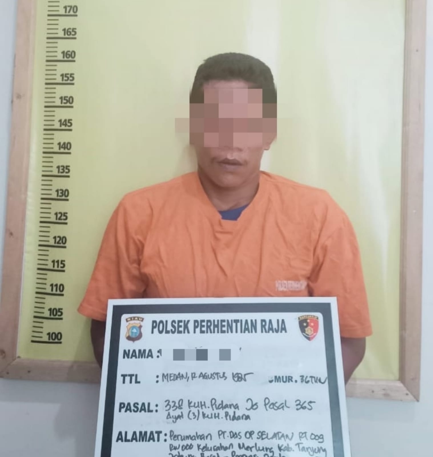 Sekira pukul 17.00 wib, Polsek Perhentian Raja mendapatkan informasi bahwa ada seseorang laki-laki bernama RP menyerahkan diri atas perbuatan yang dilakukannya kepada korba di Polsek Merlung Polres Jabung Barat Polda Jambi.