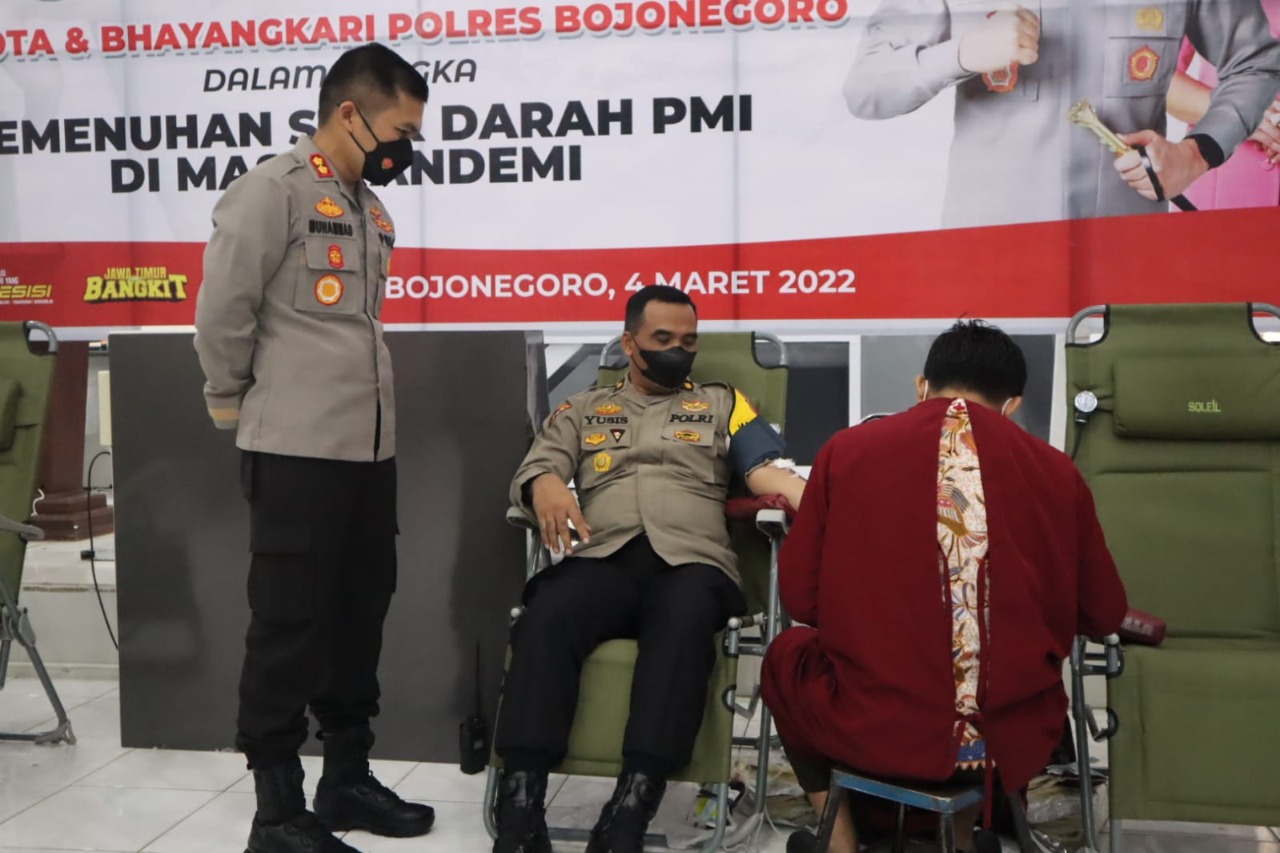 Bojonegoro, fokuskriminal.com – Untuk menjaga ketersediaan stok darah di Bojonegoro, Polres Bojonegoro menggandeng Palang Merah Indonesia (PMI) Bojonegoro dalam upaya menjaga ketersediaan darah melalui aksi donor darah oleh anggota, Aparatur Sipil Negara (ASN) Polres Bojonegoro dan Bhayangkari Cabang Bojonegoro di Mapolres Bojonegoro, Jum’at (4/3/2022) pukul 07.00 WIB.