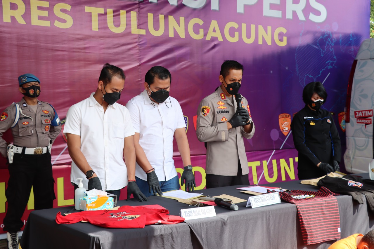 AKBP Handono mengungkapkan pers release hari ini yakni terkait ungkap Kasus penganiayaan secara bersama – sama yang melibatkan Oknum dari Perguruan Pencak silat yang ditangani oleh Sat Reskrim Polres Tulungagung.