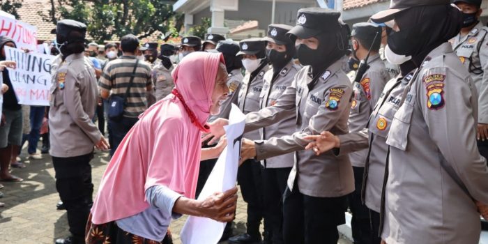 Polwan Polres Probolinggo Sigap Bantu Warga Lansia Saat Aksi Unjuk Rasa di Probolinggo