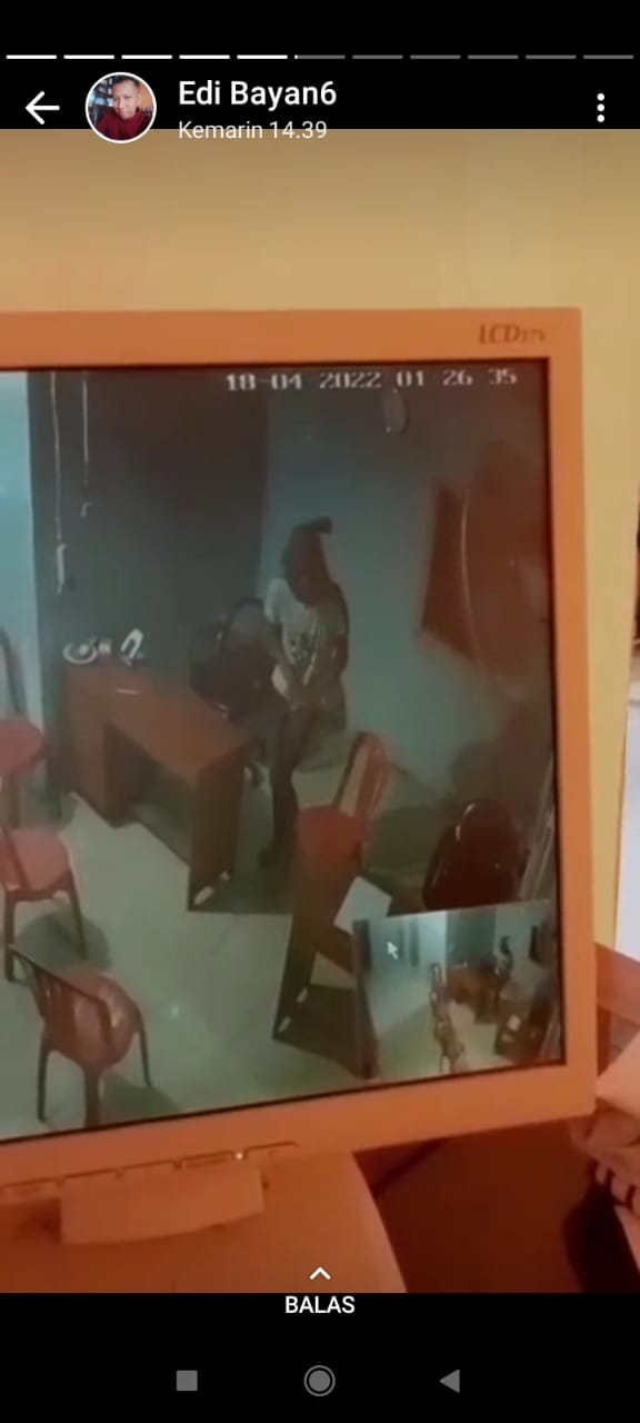 Ruangan kantor terlihat jendela rungan sudah terbuka dan tralisnya bagian dalam sudah tergeletak dan patah,dilantai kami segera melihat monitor CCTV Yang Terletak di ruangan kepala kampung dan terlihat jelas sudah terjadi pencurian di kantor kepala kampung Rajawali kata bayan 06 Edi