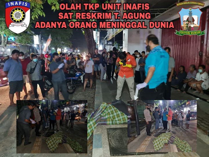Menurut keterangan saksi-saksi di tkp korban diketahui bernama Basuki (56), alamat Ds. Mangunsari, Kec. Kedungwaru, Tulungagung (ODGJ) yang pada sekitar pkl. 18.30 Wib masih duduk disekitar trotoar berdiam diri namun sekitar pkl. 21.00 Wib korban terlihat tergeletak tidak sadarkan diri sehingga saksi mendekatinya namun setelah di cek korban sudah meninggal dunia. Kemudian saksi menghubungi saksi lain untuk segera dilaporkan ke Polsek Kedungwaru.