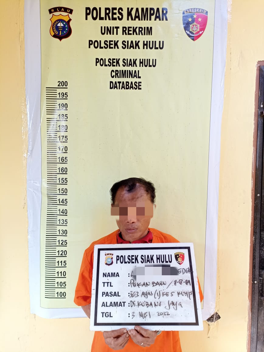 Usai terima laporan Tim Opsnal yang dipimpin oleh Iptu Novris Simanjuntak SH., MH melakukan penyelidikan terhadap keberadaan pelaku kemudian Unit Reskrim Polsek Siak Hulu mendapat informasi bahwa pelaku sedang berada di di Desa Kubang Jaya.