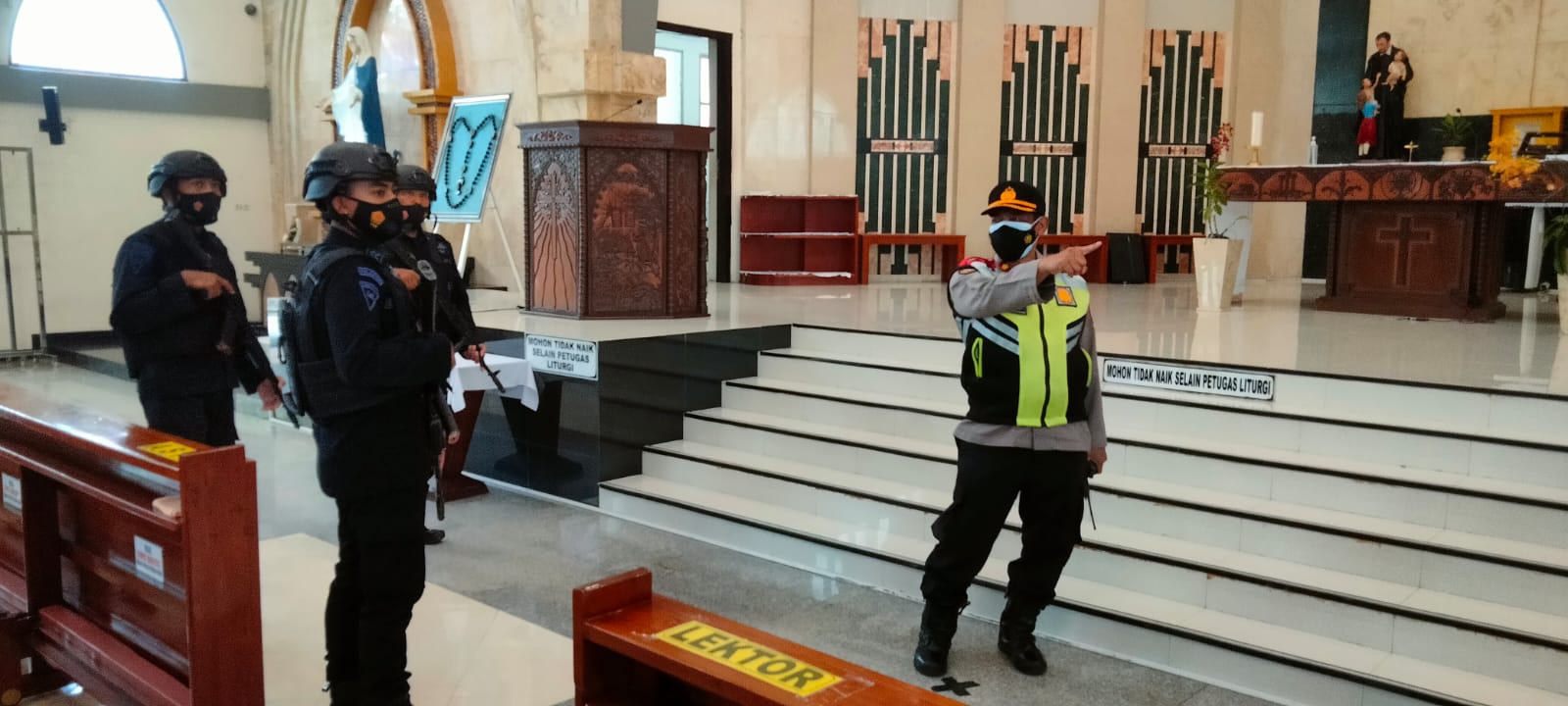 Di lokasi, polisi juga melakukan sterilisasi sebelum kegiatan dimulai, memeriksa barang bawaan jemaat yang mencurigakan, dan melakukan pengaturan lalu lintas.