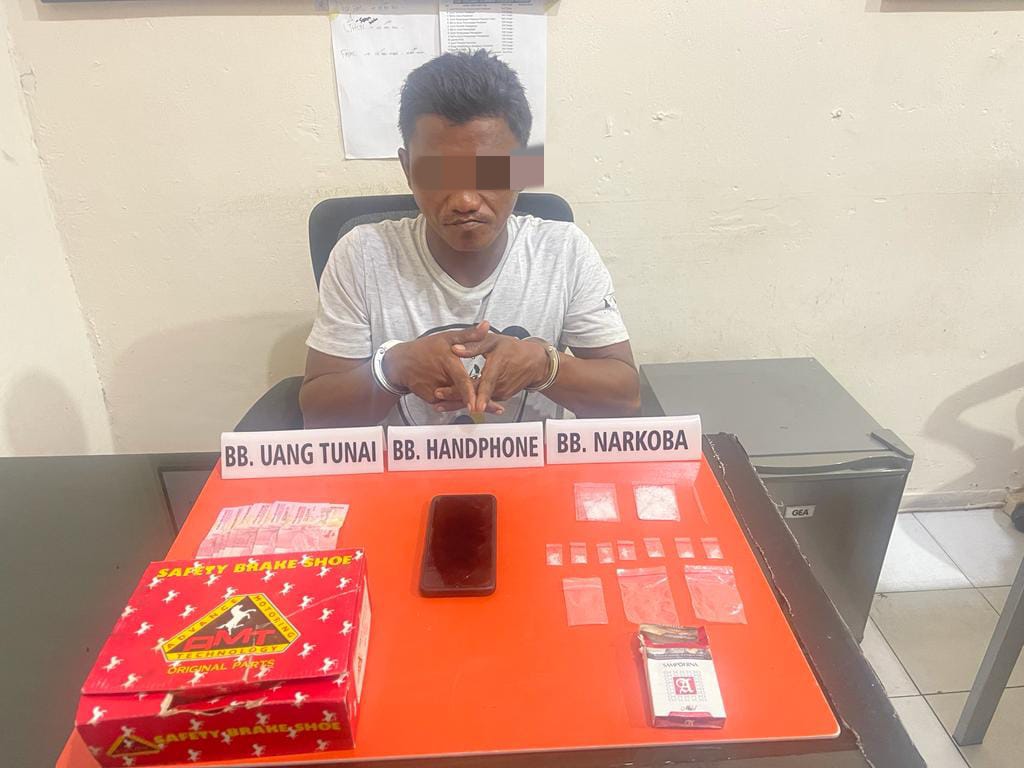 Barang bukti berhasil diamankan saat penggeledahan rumah pelaku adalah 9 (sembilan) paket diduga narkotika jenis shabu yang dibuingkus dengan plastic bening (Bruto 8.13 Gram). 3 (tiga) Buah Plastik Bening, sendok shabu, kotak rokok merk sampoerna, kotak warna merah, handphone merk Vivo warna biru dan uang tunai sejumlah Rp.800.000 (dealapan ratus ribu rupiah).