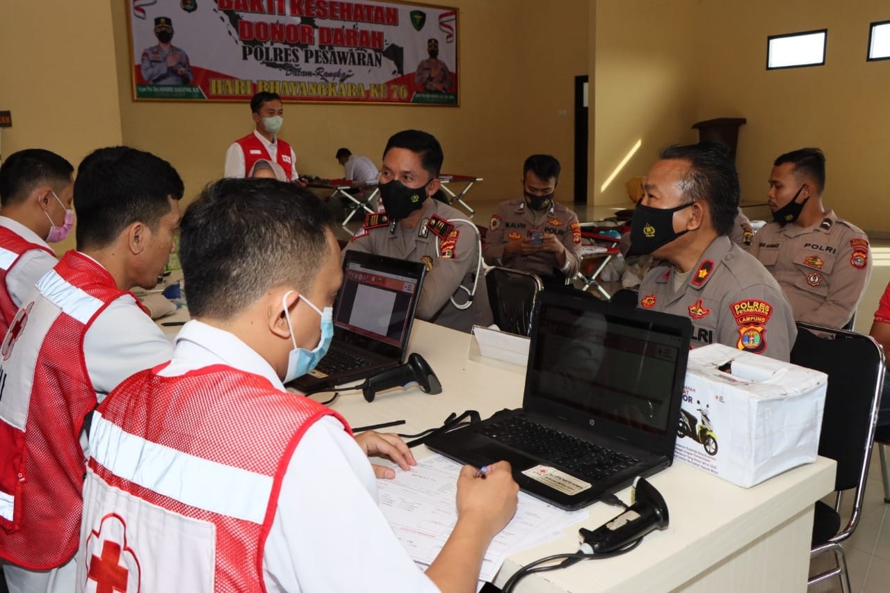 Kapolres Pesawaran AKBP Pratomo Widodo menerangkan, kegiatan Donor Darah tersebut diikuti dengan seluruh jajaran Polres Pesawaran, mulai dari Polsek-polsek hingga anggota Bhayangkari, “Kegiatan Sosial Kemanusiaan ini merupakan agenda dalam menyambut Hari Bhayangkara Ke-76,” ujar Kapolres Pesawaran.