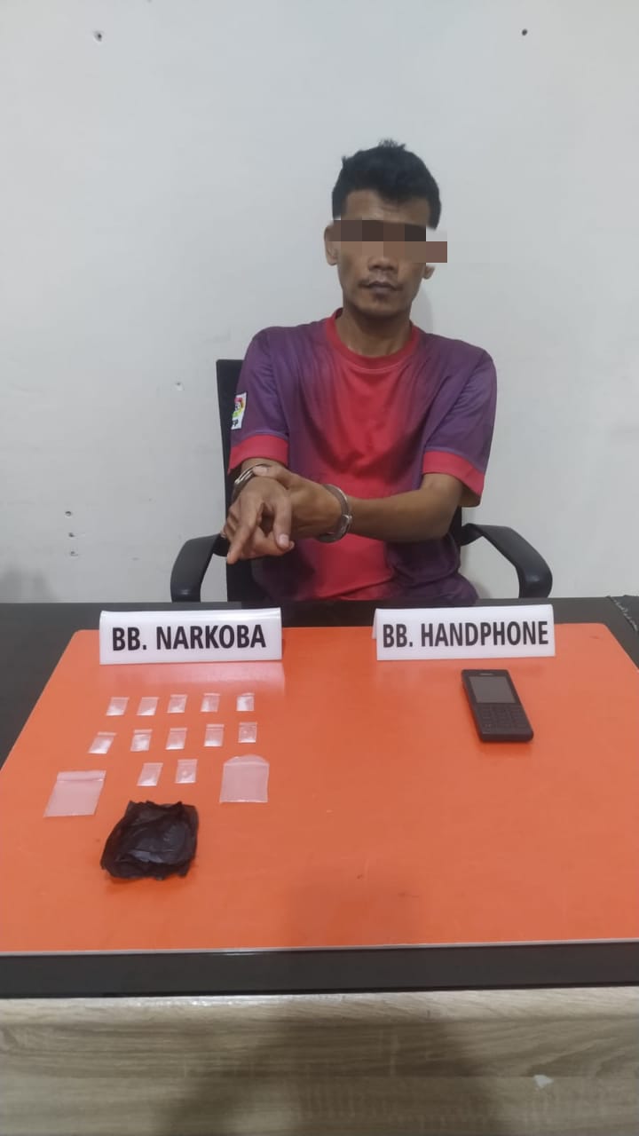 Pelaku diduga seorang pelaku pengedar dari hasil penggeledahan di dalam rumah pelaku ditemukan barang bukti berupa, 12 paket diduga Narkotika jenis Shabu yang dibungkus dengan plastic klip putih bening, (Bruto 1.93 Gram), handphone Merk Nokia warna hitam, 2 plastik klip putih bening, satu kantong plastik warna hitam.