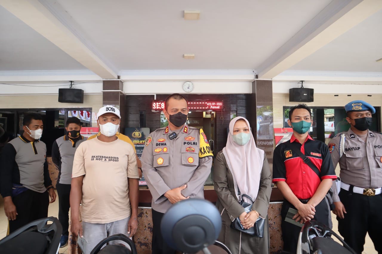 Bukan tanpa sebab, sepeda motor yang sebelumnya sempat raib / hilang dicuri pelaku, kini kembali. Hal itu diutarakan oleh salah satu korban saat menerima motor kesayangan, di lobby Polres Lumajang langsung dari Kapolres AKBP Dewa Putu Eka D, S.I.K M.H, Jum’at (22/7/2022).