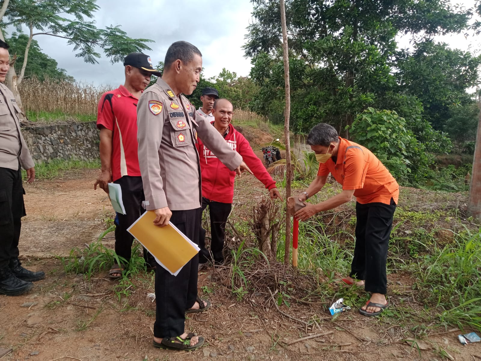 AKP Dirhamsyah menjelaskan, “kegiatan hari ini melihat lokasi tanah yang dihibahkan kepada POLRI untuk Polsek Batu Putih dengan ukuran 50 X 100 m perbatasan dengan sungai, selanjutnya akan kita proses hibahnya.