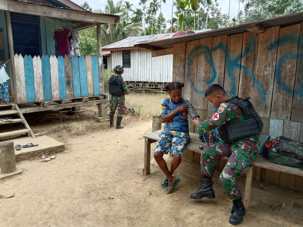 Papua, fokuskriminal.com. – Prajurit Satgas Yonif 126/KC Pos Unggalom laksanakan kesehatan door to door ke rumah warga Kampung Umuaf, Kabupaten Keerom.