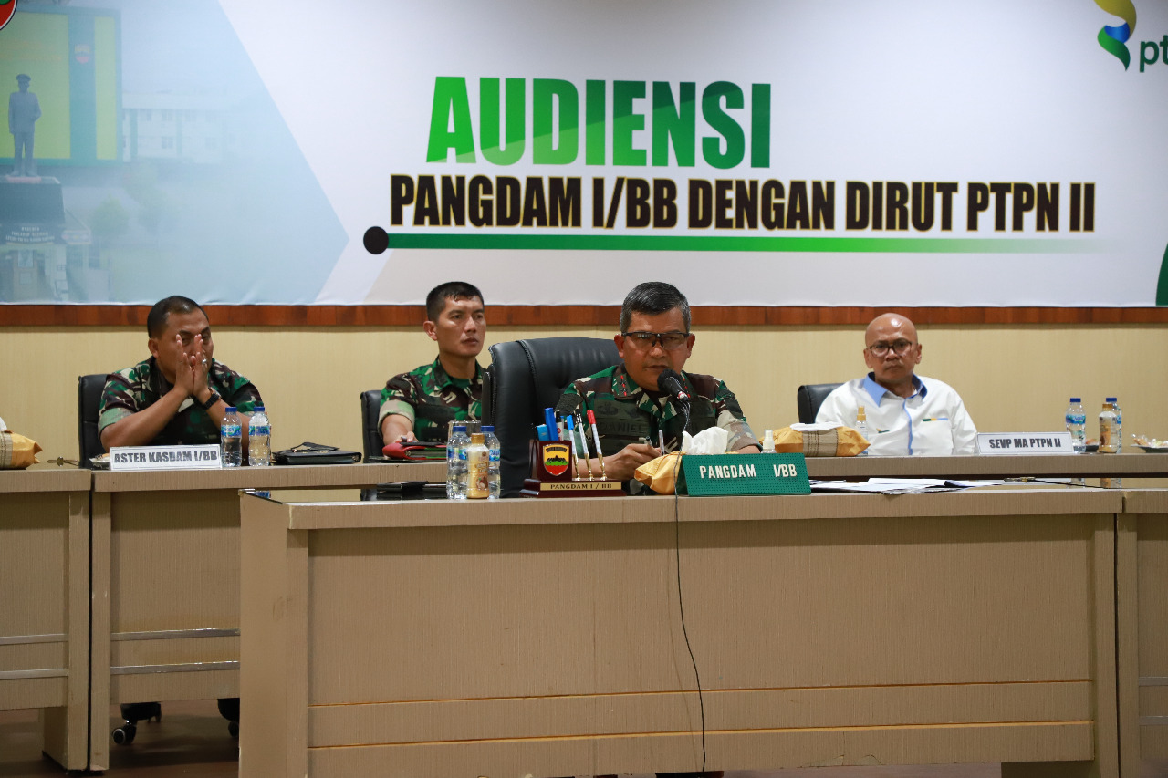 Pada kesempatan tersebut Pangdam mengatakan bahwa, dengan adanya kegiatan audiensi ini dengan pihak Perseroan Terbatas Perkebunan Nusantara (PTPN II) bisa menjadi wadah komunikasi dan koordinasi dalam menjalankan tugas kedepannya.