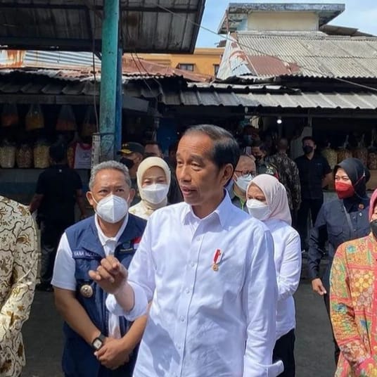 Presiden Jokowi bersama rombongan tiba di Pasar Cicaheum sekitar pukul 09.15 WIB. Jokowi terpantau hadir ditemani oleh ibu negara Iriana Widodo.