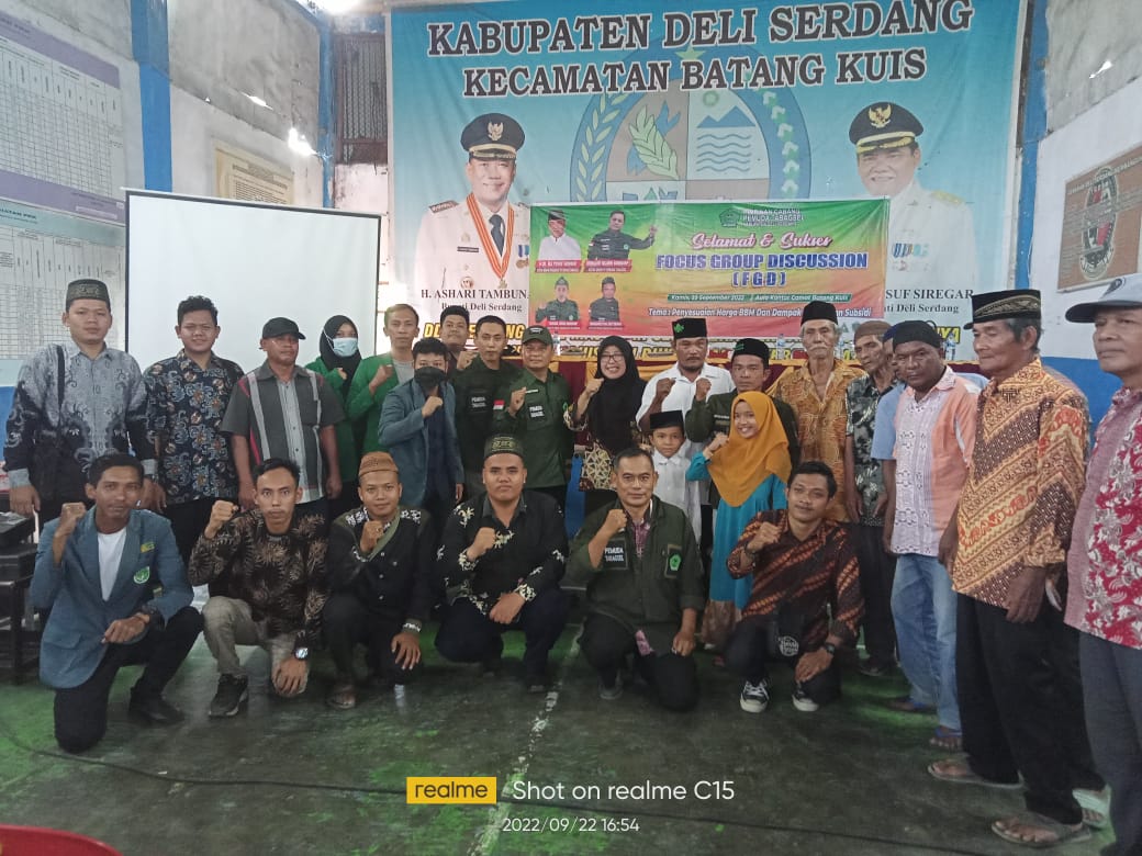 *Deli Serdang, ,fokuskriminal.com.* Sebagai elemen masyarakat generasi muda yang responsif dalam mengkacamatai dan menyikapi secara arif kebijakan pemerintah terkini dalam menyesuaikan harga bahan bakar minyak (BBM), Pimpinan Cabang (PC) Pemuda Tabagsel Kabupaten Deliserdang menyelenggarakan perhelatan Focus Group Discussion (FGD) yang mengambil tema : “Penyesuaian Harga BBM dan Dampak Pengalihan Subsidi” yang digelar di Gedung Aula Kantor Camat Batang Kuis, Jalan Muspika, Desa Tanjung Sari, Kecamatan Batangkuis, Kabupaten Deliserdang, Kamis, (22/09/2022).