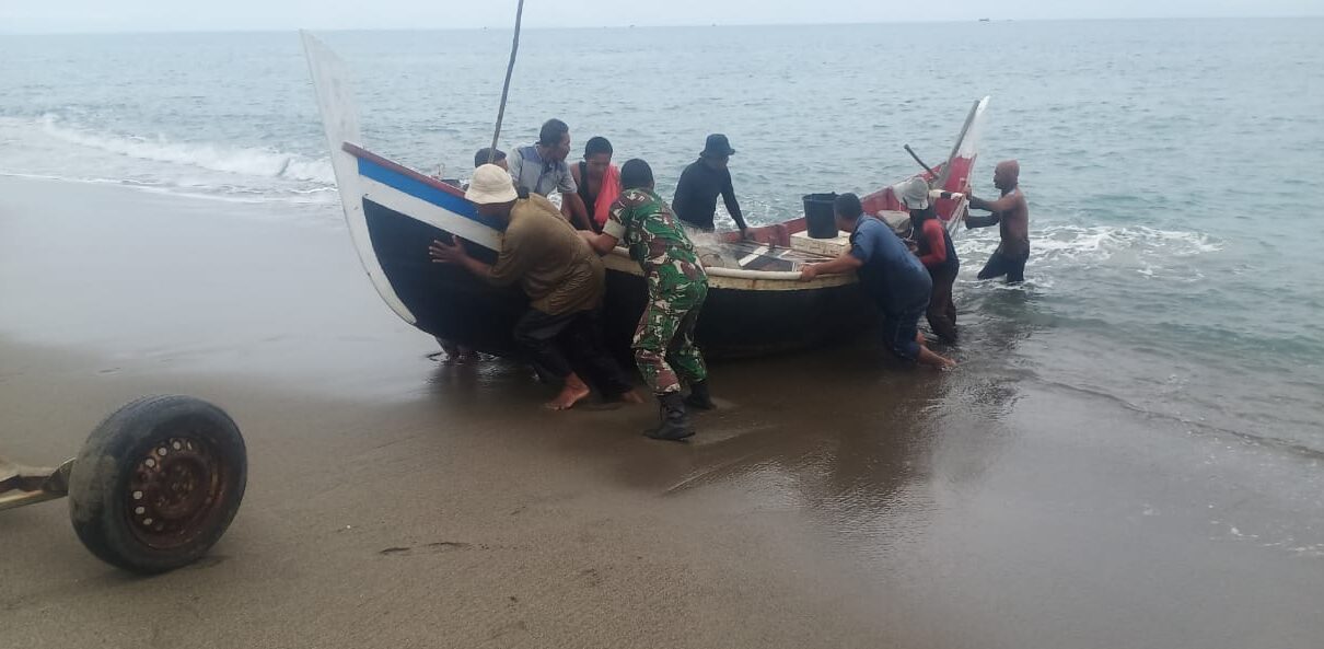 Sertu Sarli Babinsa Koramil 07/Jangka Kodim 0111/Bireuen melaksanakan kegiatan komsos membantu para nelayan menarik perahu yang baru pulang dari mencari ikan di laut di desa Ulu Buya pase, Kecamatan Jangka,Kabupaten Bireuen, Minggu(4/9/2022)