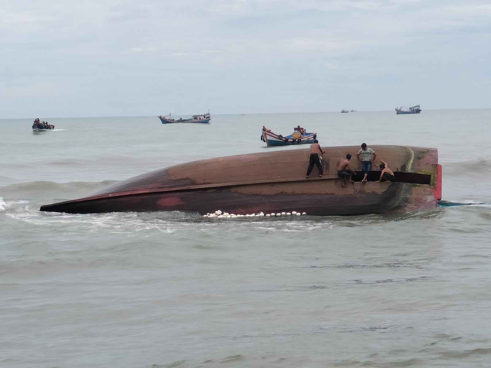 Satu unit Boat Labi-labi milik Nurdin Gani Warga Teupin Pukat, Kecamatan Meurah Dua, Kabupaten Pidie Jaya, tenggelam di Kuala Meureudu pada Rabu (07/9/2022).