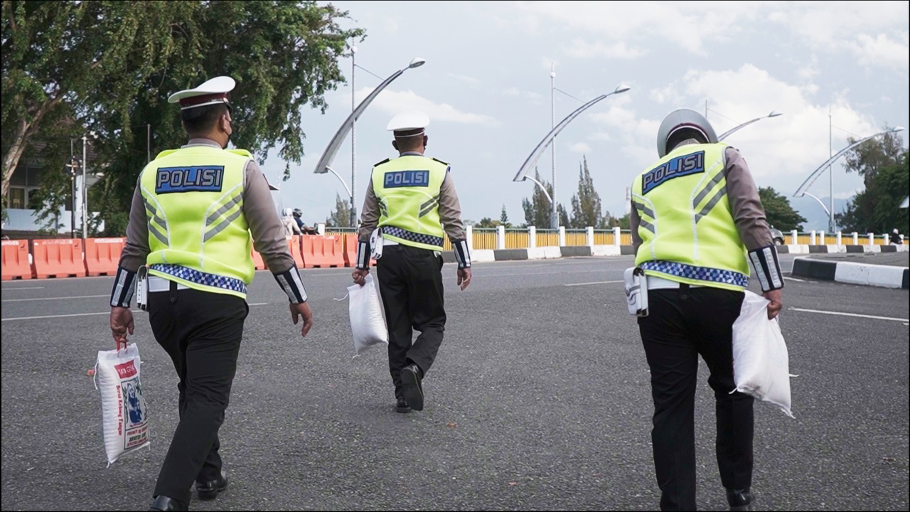 Saat pembagian sembako tersebut juga diselipkan pesan-pesan tertib berlalu lintas dan imbauan agar masyarakat berhati-hati di jalan serta mengutamakan keselamatan,”