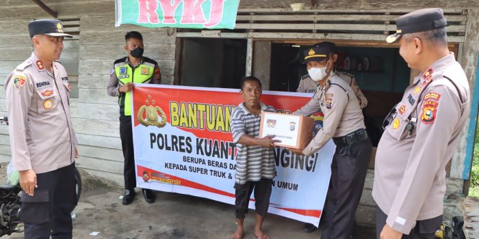 “Tadi siang Polres Kuansing dan Polsek jajaran memberikan bansos sebanyak 604 paket kepada buruh, seperti tukang tambal ban, pedagang asongan, tukang bangunan, Lansia dan masyarakat yang membutuhkan di wilayah Hukum Polres Kuantan Singingi, ” kata Tapip.