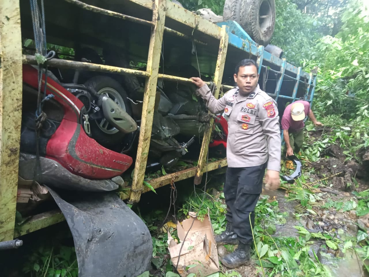 Kecelakaan Tunggal Di Aceh Tenggara,Mobil Truk Bermuatan Sepeda Motor Masuk Jurang