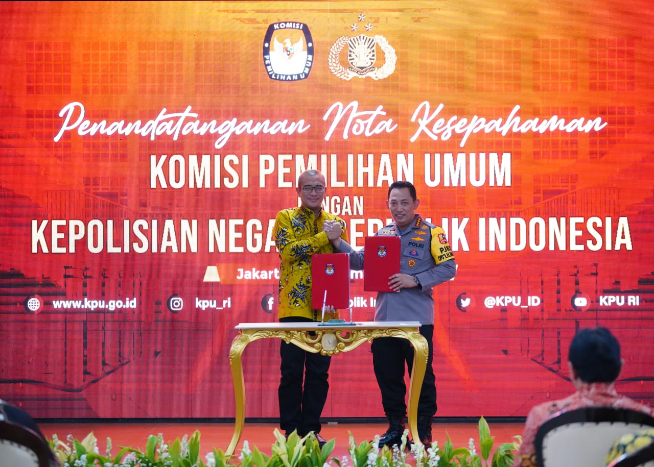 Jakarta, fokuskriminal.com – Kepolisian Negara Republik Indonesia (Polri) dan Komisi Pemilihan Umum (KPU RI) menandatangani nota kesepahaman terkait dengan sinergisitas pelaksanaan tugas dan fungsi dalam penyelenggaraan Pemilu dan pemilihan serentak tahun 2024.