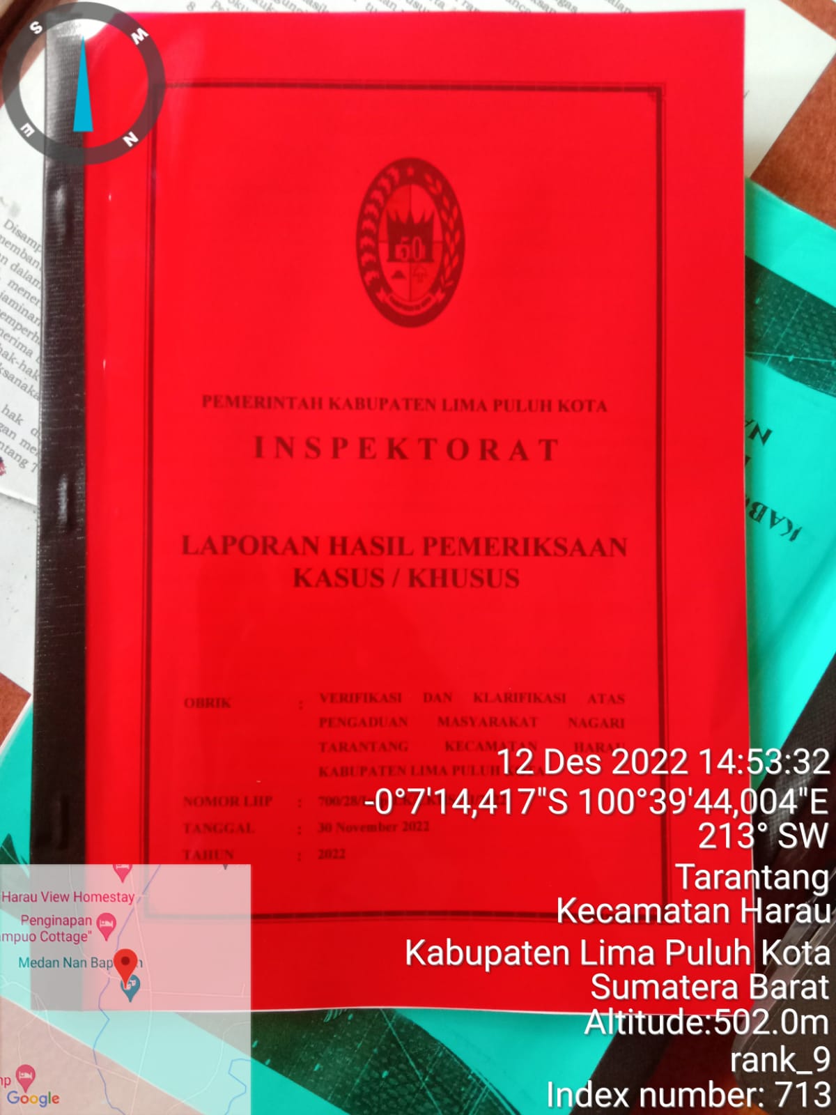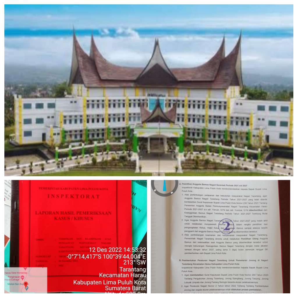 Inspektorat Kabupaten Limapuluh Kota menerbitkan Laporan Hasil Pemeriksaan (LHP) No.713/1790/INSP-LK/XII/2022, 6 Desember 2022. Dikirimkan ke Bupati Limapuluh Kota dan ditembuskan kepada Wali Nagari Tarantang, DPMD/N Limapuluh Kota dan Bamus Nagari Tarantang.