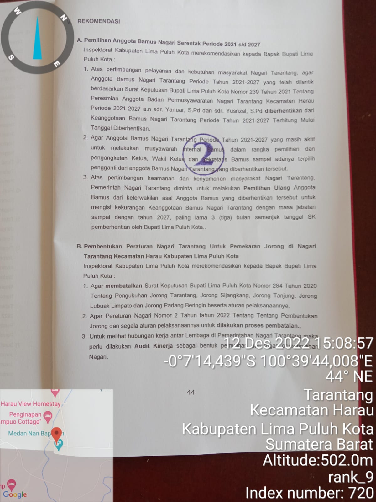 Limapuluh kota ( Sumatera Barat ) fokuskriminal.com.– Gonjang ganjing dugaan Pelanggaran UU No. 6 Tahun 2014 pasal 56 dan Permendagri 110 Tahun 2016 pasal 15 terkait S/K Bupati No.239 Tahun 2021 tanggal 15 Juni tentang Peresmian Anggota Bamus Nagari Tarantang periode 2021-2027 a/n YN dan YS.