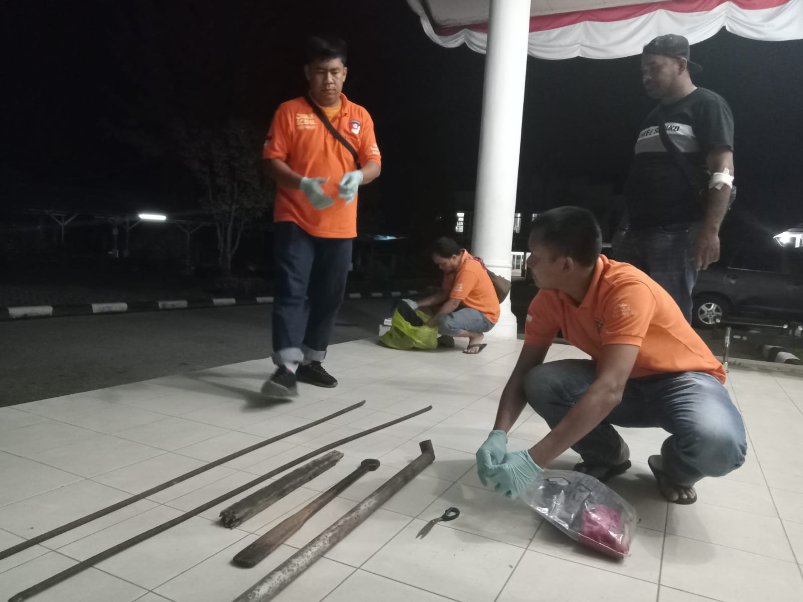 Ia menambahkan selain melumpuhkan pelaku, petugas kepolisian juga menyita barang bukti berupa dua batang besi, satu batang pipa, sebilah parang, pipa besi, kayu broti, gunting, dan pakaian.