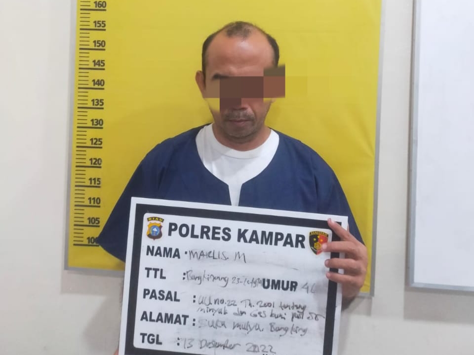 Pelaku MM, warga Desa Suka Mulya, Kecamatan Bangkinang. Dari kasus ini berhasil diamankan barang bukti, 4 tabung yang akan disuling, obeng, 4 jarum yang digunakan untuk penyulingan, sebungkus segel palsu tabung Gas Elpiji, timbangan untuk menimbang tabung gas elpiji dan 64 tabung Gas Elpiji.