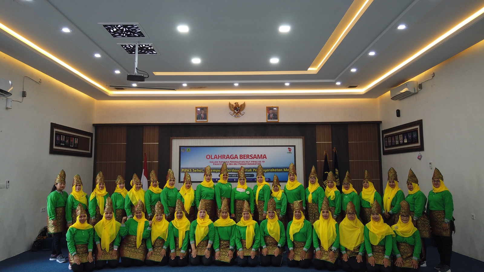 Lebih lanjut Ny. Utami menyampaikan “Senam Sehat Bersama dilaksanakan terpusat secara virtual, untuk pelaksanaan di pusat dilaksanakan di Lapangan tenis (indoor) Badan Pendidikan dan Pelatihan Kanwil Kemenkumham Jawa Tengah dengan dipimpin langsung oleh Ny. Anna Reynhard Silitonga selaku Penasehat PIPAS Pusat, dan kegiatan ini dilaksanakan secara serentak oleh seluruh PIPAS Se-Indonesia”.