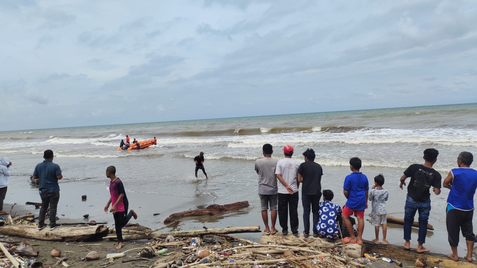 “Ombak terlalu besar, mencari dengan  perahu karet terpaksa dihentikan untuk menghindari korban dari tim pencari. Saat ini dilakukan pencarian di garis pantai, ujar Pak Haji.