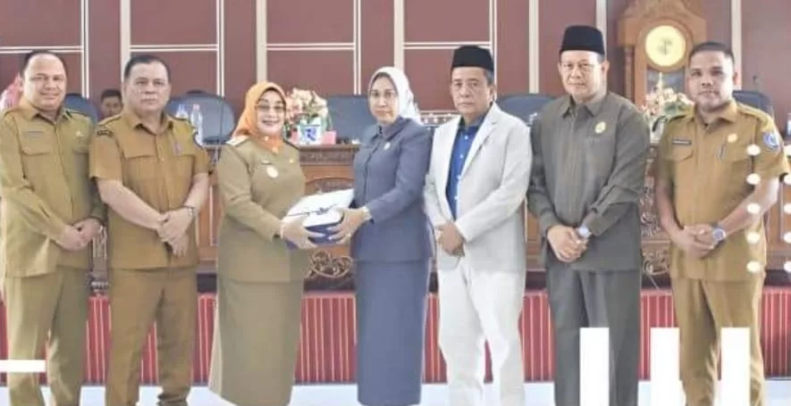 Labuhanbatu – Wakil Bupati Labuhanbatu Hj. Ellya Rosa Siregar, S.Pd,MM hadiri Rapat Paripurna DPRD Pembahasan Ranperda Pertanggungjawaban Pelaksanaan APBD Kabupaten Labuhanbatu Tahun Anggaran 2022, di Ruang Rapat Paripurna DPRD Kabupaten Labuhanbatu, Selasa (11/7/2023).