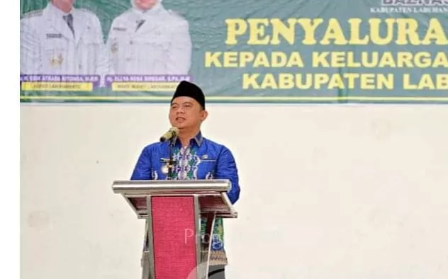 Labuhanbatu – Bupati Labuhanbatu dr. H. Erik Adtrada Ritonga, MKM. bersama Wakil Bupati Labuhanbatu Hj. Ellya Rosa Siregar, S. Pd., MM berikan bantuan Zakat dan Infaq kepada Masyarakat Kecamatan Rantau Selatan yang diselenggarakan oleh Baznas Kabupaten Labuhanbatu di Aula Serbaguna Rumah Dinas Bupati Labuhanbatu, Rantau Utara, Kamis (02/11/2023).