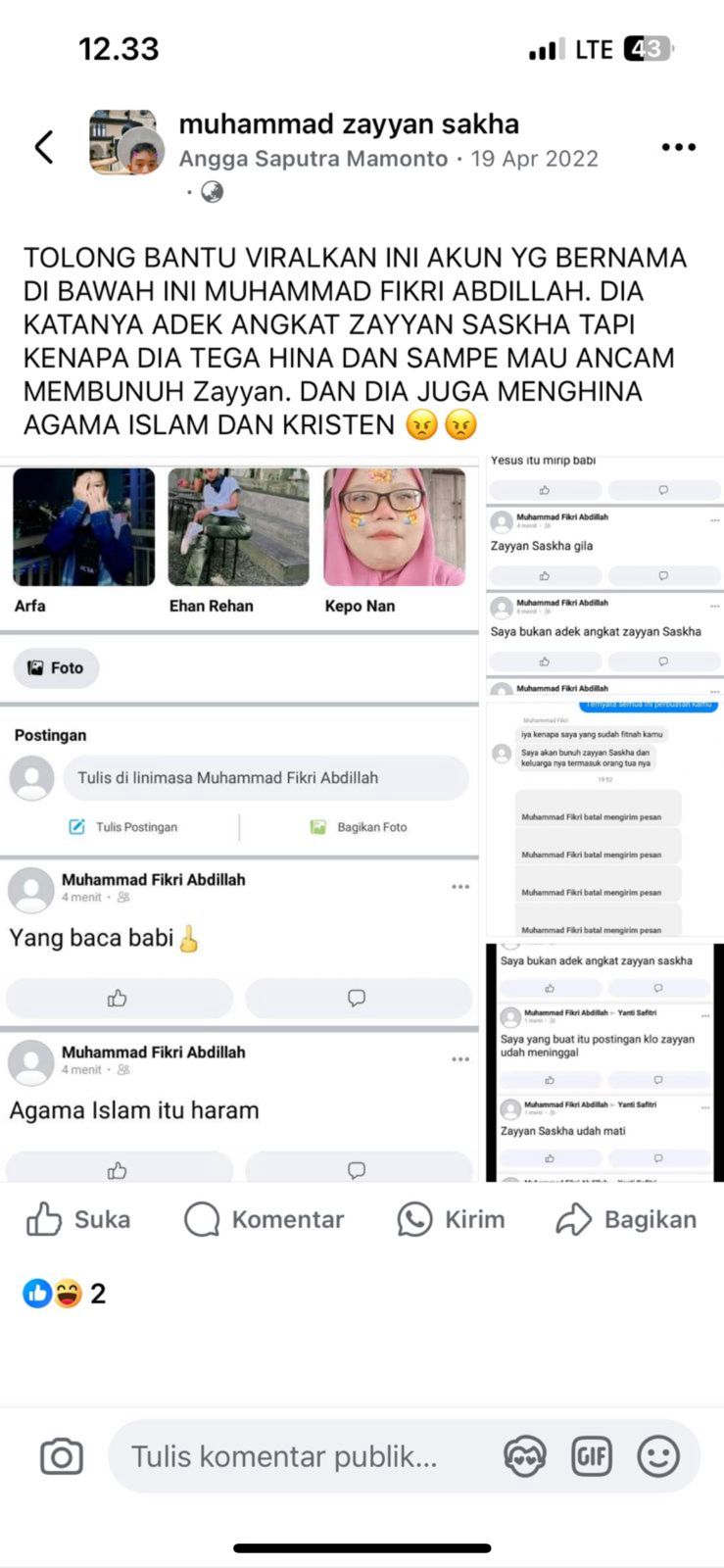 Laporan tersebut dibuat setelah Fikri merasa dirugikan oleh pernyataan yang disebarkan oleh oknum tertentu melalui media sosial dan aplikasi pesan singkat.