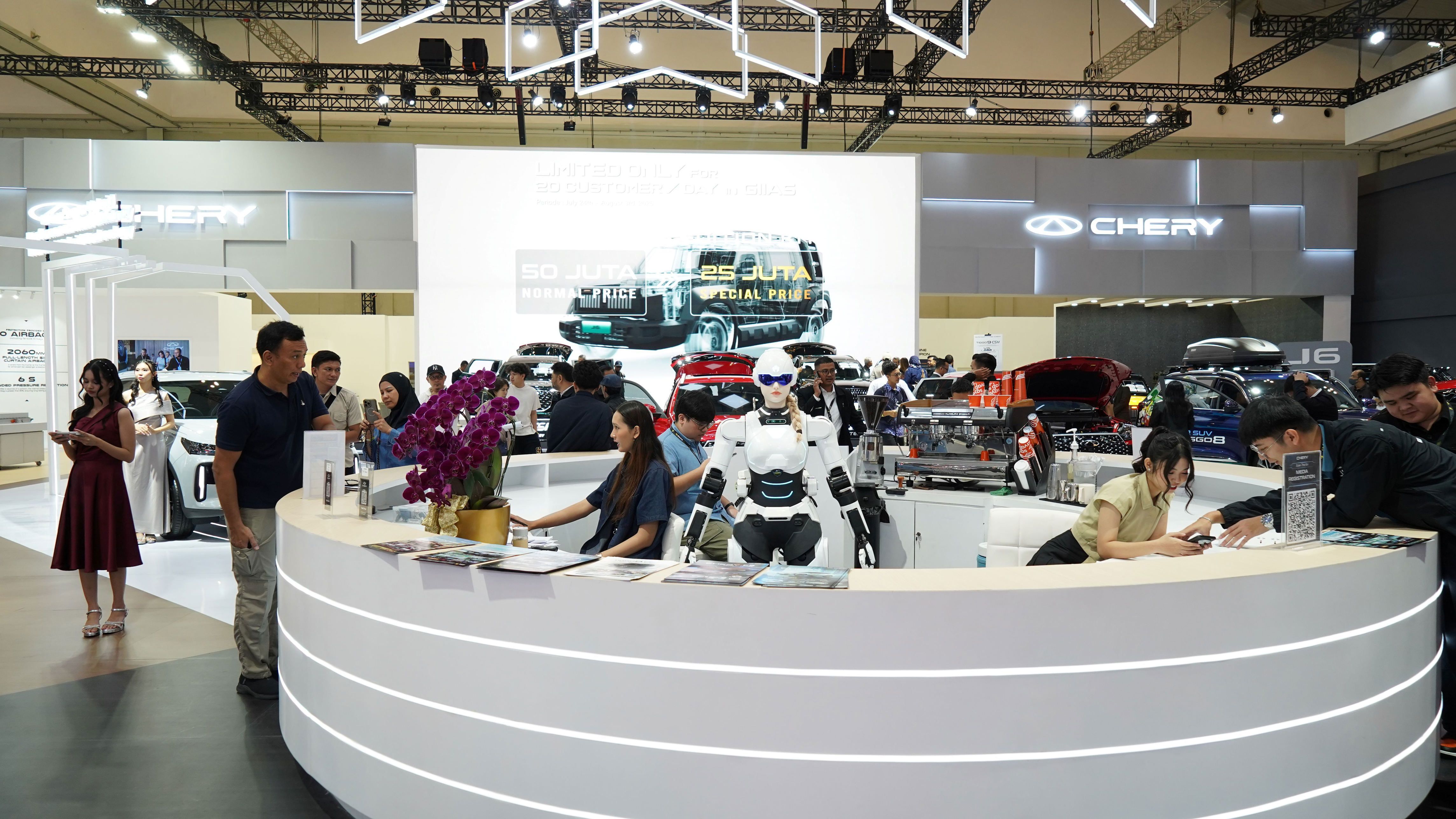 Kemajuan Chery tidak terlepas dari strategi yang matang. Mengusung tema“Teknologi Baru, Integrasi Baru, Misi Baru,” Chery memikat pengunjung dengan boothSeluas 1.428 m² yang modern dan canggih. Terdapat 10 model terbaik yang dipamerkan, termasuk Tiggo 8 CSH, Tiggo Cross CSH Hybrid, hingga Tiggo 9 CSH.
