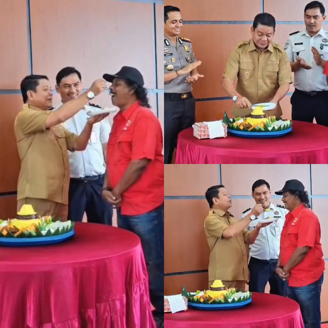 Acara ditutup dengan pemotongan tumpeng secara simbolis oleh Wabup dan Kapolres Rohul disuapkan untuk
